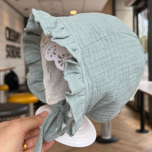 蓝绿色-荷叶边宫廷帽+头围39-44cm/仅供参考0-12个月+均码(以头围为准)绑绳
