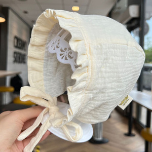 乳白色-荷叶边宫廷帽+头围39-44cm/仅供参考0-12个月+均码(以头围为准)绑绳