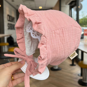 粉红色-荷叶边宫廷帽+头围39-44cm/仅供参考0-12个月+均码(以头围为准)绑绳
