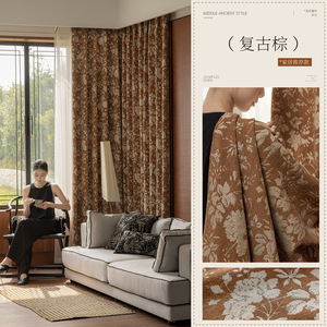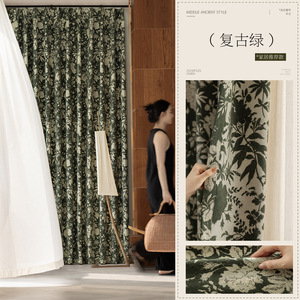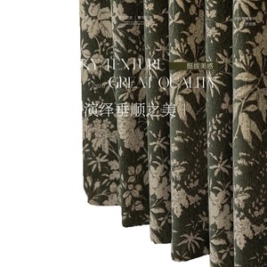 法式中古风复古绿雪尼尔提花窗帘卧室高遮光美式客厅绍兴批发成品