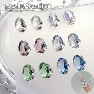 美甲透色冰糖堆钻饰品透明水晶鸽子蛋长方直角成品美甲饰品钻球