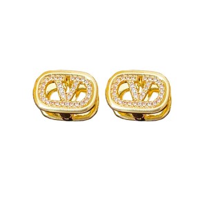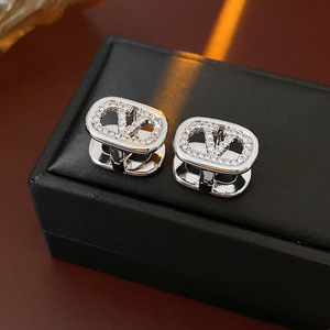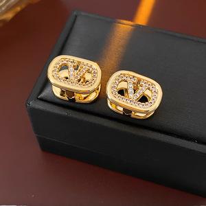 18k真金电镀锆石椭圆形耳环字母V时尚设计耳扣轻奢高级感百搭耳饰
