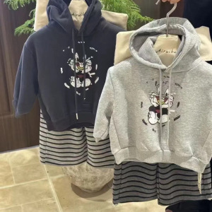 深灰色卫衣+浅灰条纹裤(无抽绳)