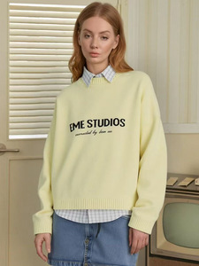 欧美跨境宽松复古慵懒风字母毛衣女秋冬2025新款套头黄色针织衫