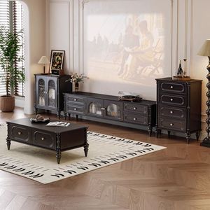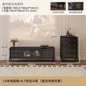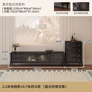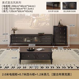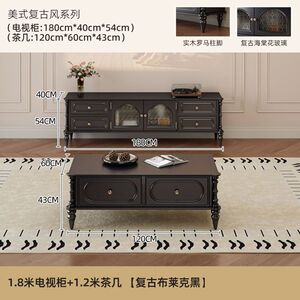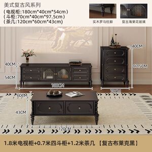 客厅靠墙小户型家用美式复古电视柜茶几组合套装收纳落地电视机柜