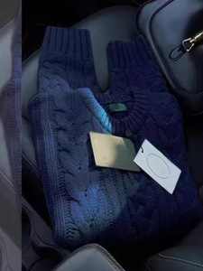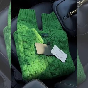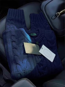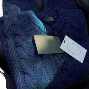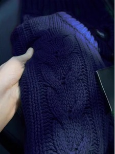 韩版高端货重工麻花藏蓝色圆领毛衣女秋冬圆领套头加厚针织衫