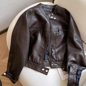 皮衣外套女春秋2025复古港风新款机车PU短款小个子宽松立领皮夹克