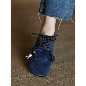 潮流款磨砂牛皮蓝色德训鞋女时尚休闲鞋2025新款秋季软皮女鞋单鞋