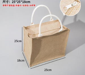 现货秒发麻布手提袋创意帆布立体袋购物袋帆布托特包麻布手提袋