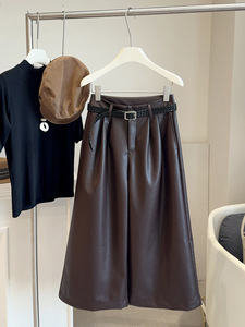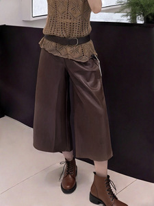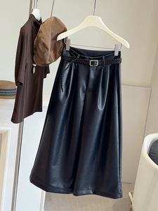 美拉德风高级感pu皮高腰八分休闲裤女秋冬季设计感宽松阔腿裤子潮