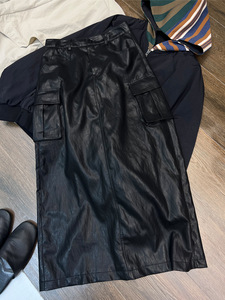 JVV十三行2025年秋季新款时尚口袋设计感长裙PU皮革半身裙女71316