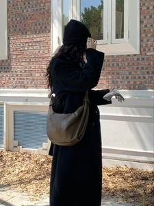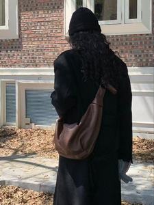韩系大容量复古软皮褶皱饺子包慵懒风休闲百搭单肩斜挎包2025新款