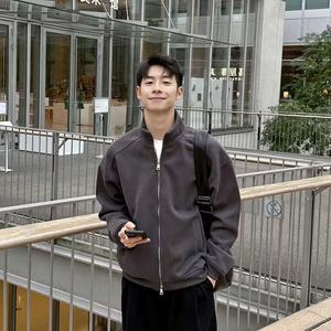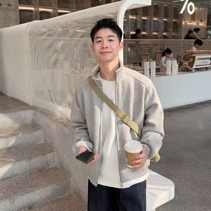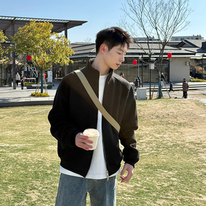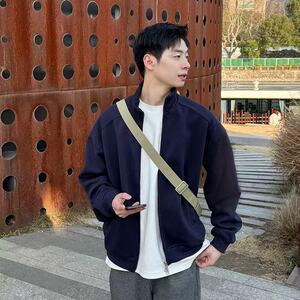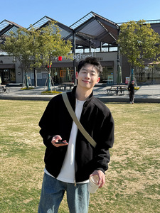 2025春秋黑色短款立领卫衣开衫男春秋季上衣外套休闲宽松潮流