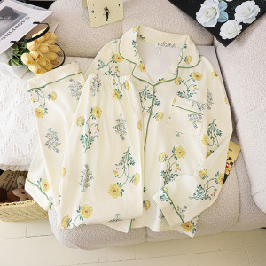 秋冬季德绒睡衣女长袖长裤韩版休闲翻领家居服可外穿套装外贸工厂