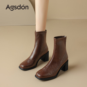奥古狮登粗跟马丁靴女2025年秋季新款英伦风复古短靴女休闲瘦瘦靴