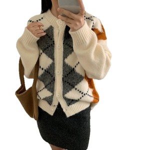 慵懒风菱形格撞色针织衫外套女2025秋冬新款高级感针织衫上衣女