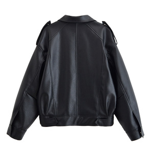PB&ZA女装2025年秋季新款 都市酷感落肩肌理纹皮夹克外套2969064
