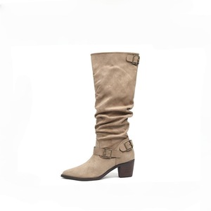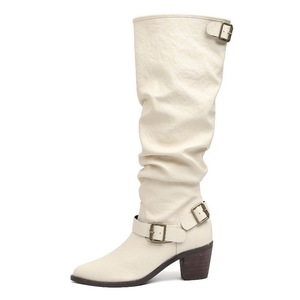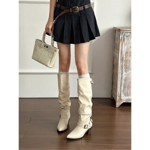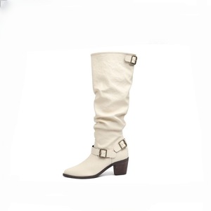 尖头白色高筒靴女夏新款不过膝粗跟骑士靴显瘦大筒围长靴
