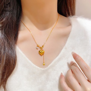 金店同款沙金古法爱心跑环流苏项链桃心小滴溜锁骨链百搭送女友礼