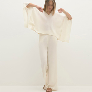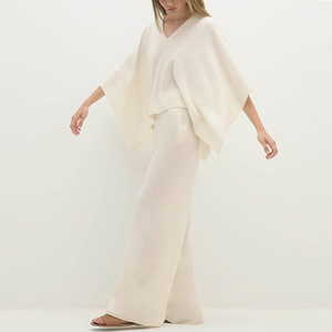 2025秋冬新款欧美女士针织套装 跨境亚马逊时尚V领设计短袖长裤女