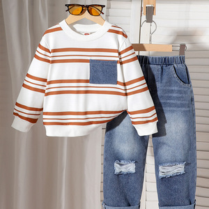 2025年外贸热销条纹款欧美运动风英伦范两件长袖长裤拼接口袋套装