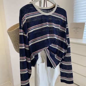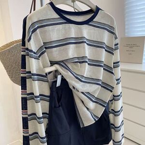 韩系条纹长袖防晒罩衫女夏季外搭宽松慵懒风薄款T恤上衣艺瑾