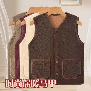 羊羔马甲妈妈坎肩加绒新款秋冬加厚中老年人背心颗粒外套保暖直发