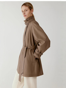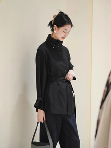 禾家上新25秋季精纺羊毛桑蚕丝色织轻薄短款立领风衣外套女