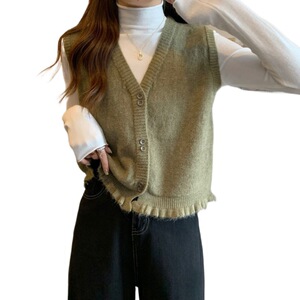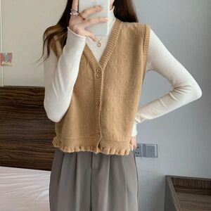 秋装毛衣马甲针织开衫女2025春秋新款边短款背心外搭毛线马夹直发