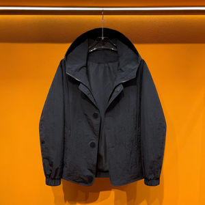 2025新款假两件连帽夹克美式复古宽松休闲外套通勤百搭极简夹克