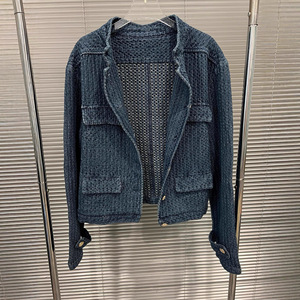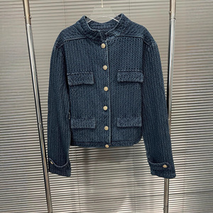 2025早秋新款牛仔小香风外套女装宽松小众肌理感立领百搭外套