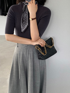 江左 黑标系列 100羊毛无缝一体打底衫气质简约半袖针织衫女U1279
