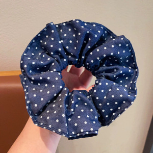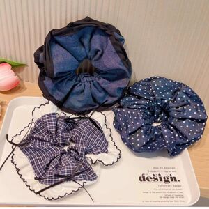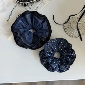 牛仔蓝褶皱大肠发圈女高级感2026新款扎头发绳丸子头皮筋头花发饰