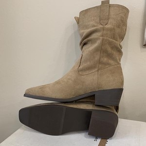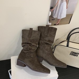 方头短靴女2025秋冬新款瘦瘦靴子堆堆靴粗跟时尚美拉德中筒西部靴