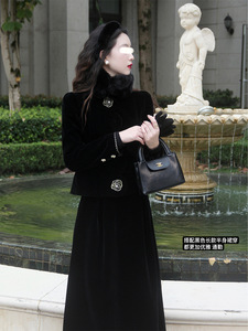 吃绿色菜【黑金3.0 】复古丝绒金线刺绣秋季气质外套