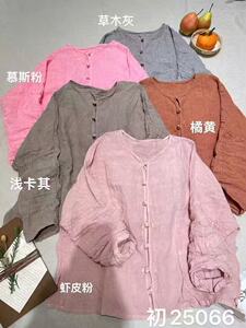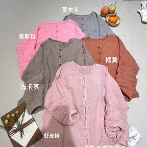 2025秋季新款 亚麻衬衫 小众设计感 v领宽松版文艺开衫衬衣女