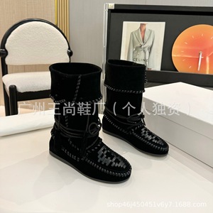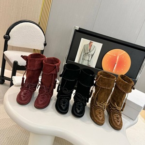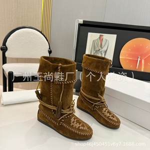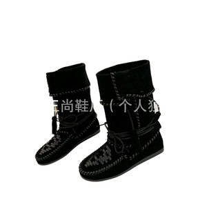广州高端品质25手工编织绑带显瘦高靴女流苏复古度假风堆堆靴女靴