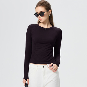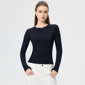 秋冬新品健身上衣T恤长袖圆领修身显瘦户外健身运动瑜伽服长袖