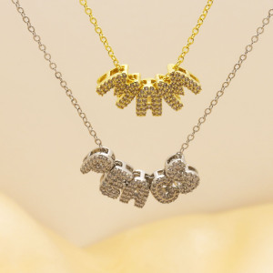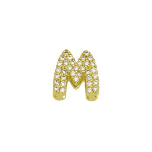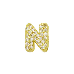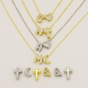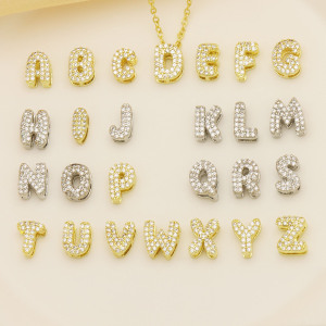 欧美跨境26字母吊坠铜镀18K金配饰镶满锆石穿孔珠diy名字首饰批发