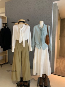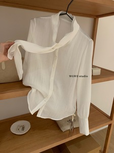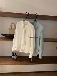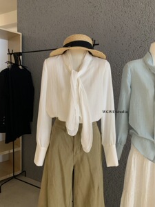 WGWE7030#广州十三行女装2025秋装新款休闲复古衬衣飘带上衣衬衫