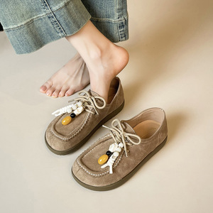 厚底全包系带勃肯鞋女秋季一脚蹬2025年新款单鞋女软底休闲袋鼠鞋