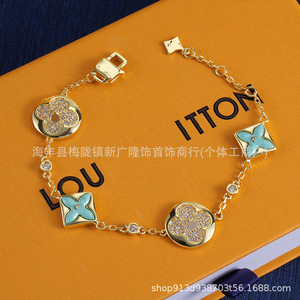 驴家高版时尚圆形四叶草系列手链四花五花镶钻白贝母气质手饰批发