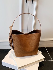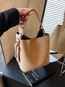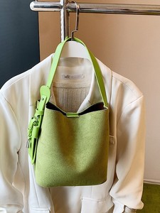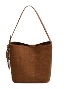 跨境高级感休闲麂皮绒水桶包新款秋冬百搭2025女士通勤简约单肩包