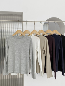 天丝亚麻长袖T恤打底衫女2025早秋新款韩版正肩纯色高弹内搭上衣
