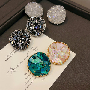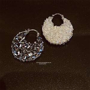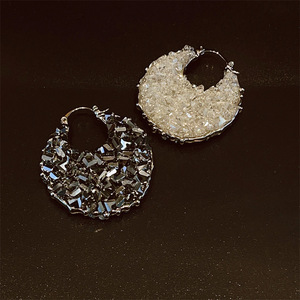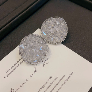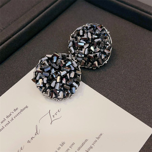 原创爆款白水晶簇圆形耳钉男女气质流砂黑满天星个性潮简约耳饰