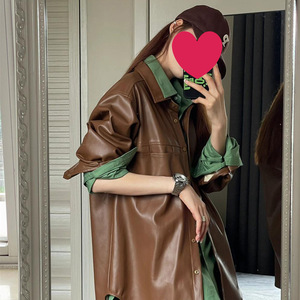 2025早春秋美拉德穿搭复古棕色皮衣外套夹克女撞色时尚一整套装女
