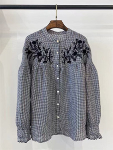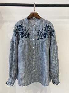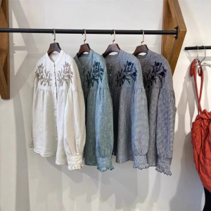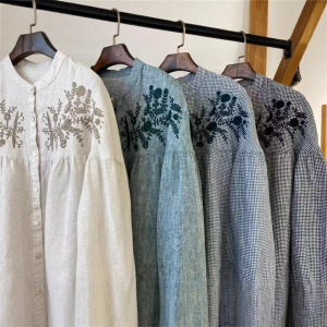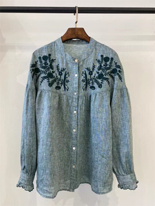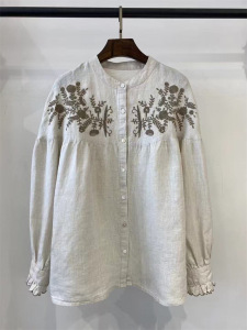 2025秋季新款高品质亚麻刺绣衬衫女宽松休闲百搭简约上衣