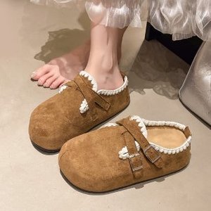 复古松糕厚底内增高包头半拖鞋女外穿2025新款秋季一脚蹬博肯单鞋