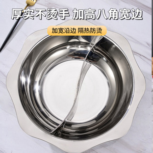 不锈钢鸳鸯火锅一体锅家用小龙虾商用八角太阳盆浅盘电磁炉煮涮锅