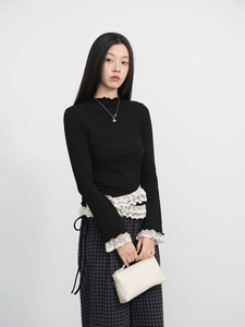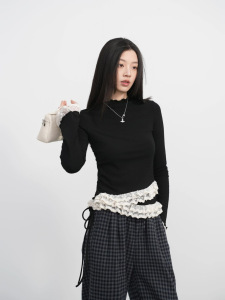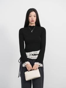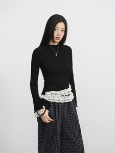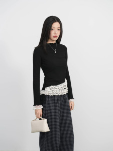 甜美设计感芭蕾风蕾丝花边打底衫女秋冬新款小香风内搭半高领上衣